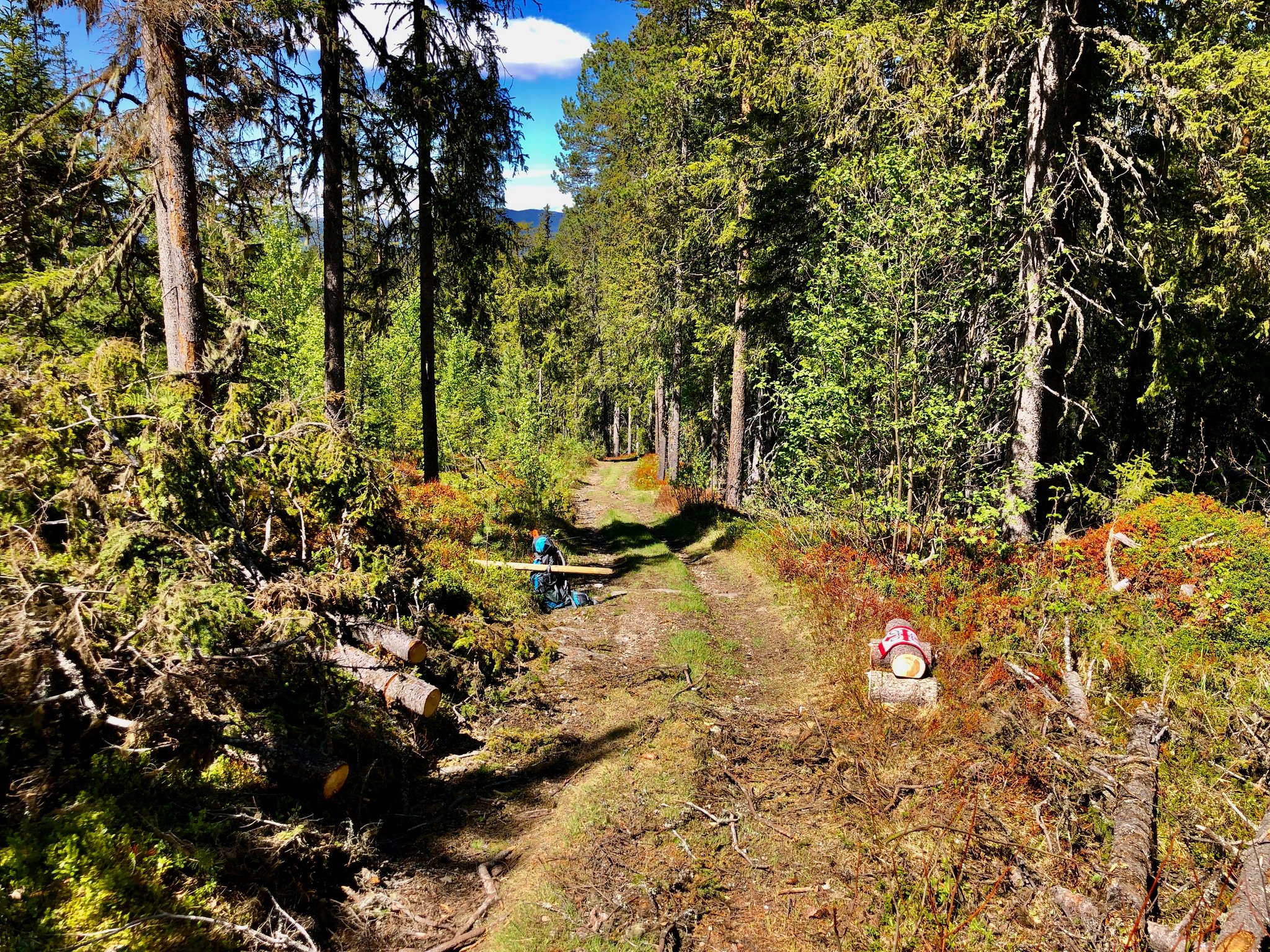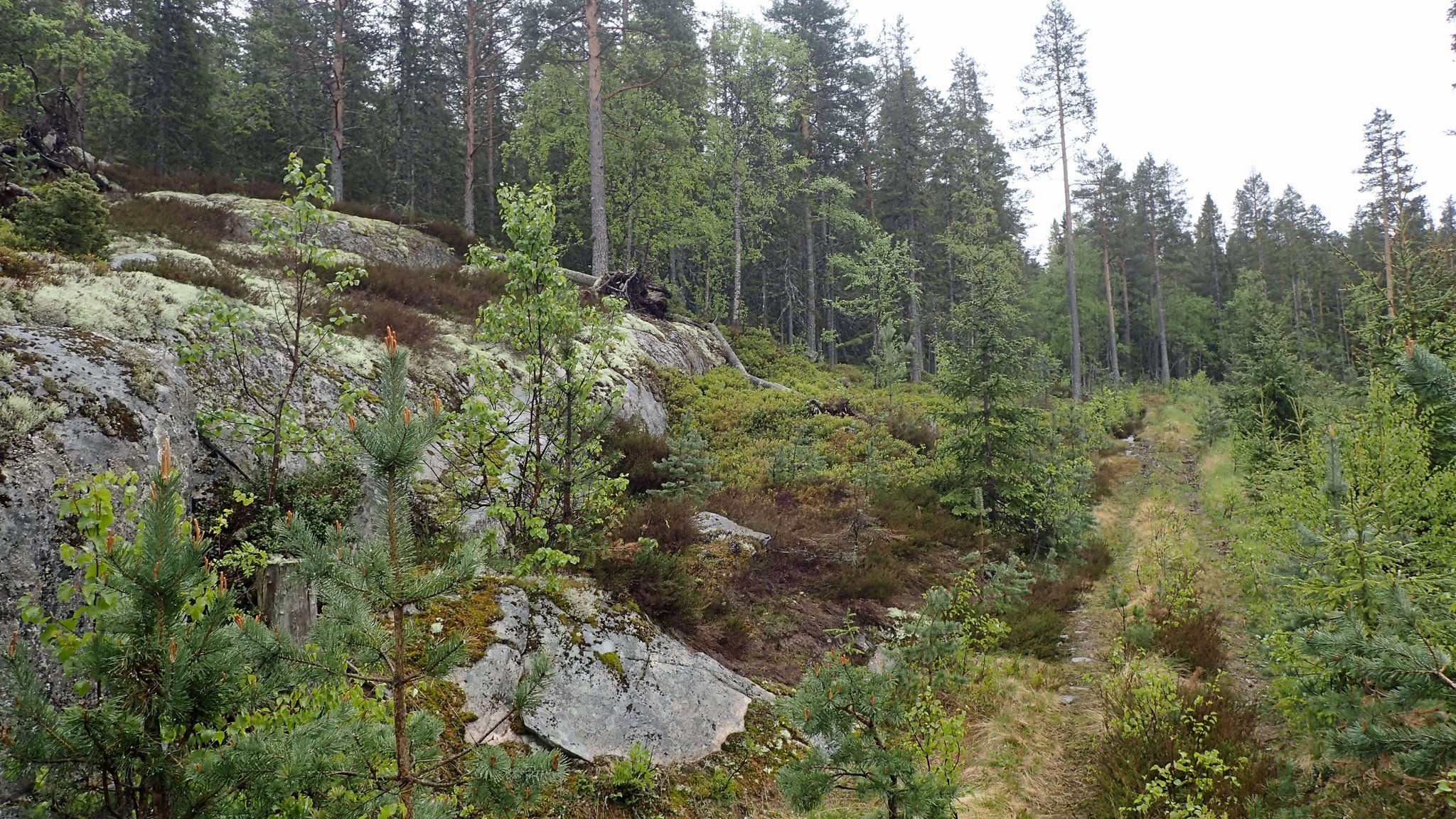 Zurück auf dem Waldweg sind es nun nur noch ein paar hundert Meter bergab, bevor der Waldweg wieder einmal auf die neue "Hovin Heia" stößt.