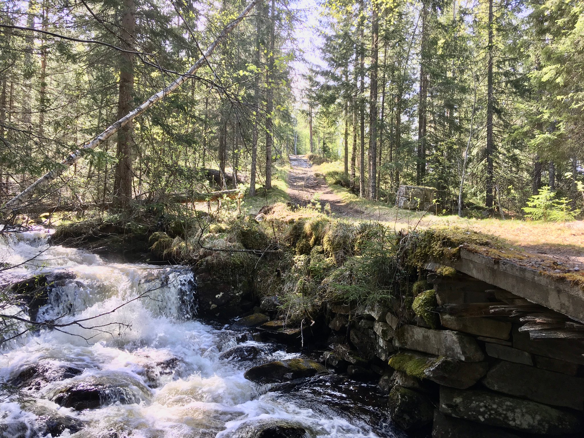 Ihr folgt diesem (jetzt als "kjerrevei - Karrenweg" beschriebenem) Weg weiter, meist gleichmäßig aber auch ein Stück steiler, bergan durch den Wald. Haltet euch immer eher links auf dem Hauptweg. Oben auf der Höhe angekommen, schaut euch einmal ganz bewusst um. Es ist eine sehr felsige Anhöhe und man erzählt, dass es im 2. Weltkrieg genau hier eine Barrikade der Einheimischen gegen den Einmarsch der Deutschen gegeben hat. Die deutschen Soldaten kamen den gleichen Weg wie ihr und die Norweger lagen hinter den Felsen. An diesem Tag 1940 gelang es den Deutschen nicht weiter Richtung Rjukan und Vemork vorzudringen. Einer der norwegischen Soldaten hat diese Ereignisse und seine weiteren Erlebnisse im Krieg sehr eindrucksvoll aufgeschrieben.