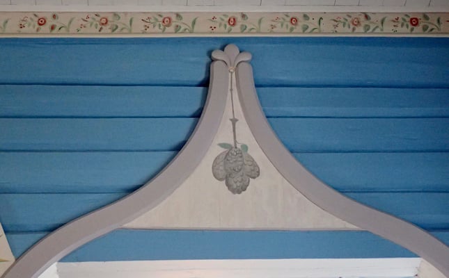 The church was painted in 1912 in different colours and in 1921 received the altarpiece, painted by Harald Brun. In 1979-80 the church was restored and has since been painted in the colours of the time it was built. The old altarpiece was restored and the new one was hung on the south wall.