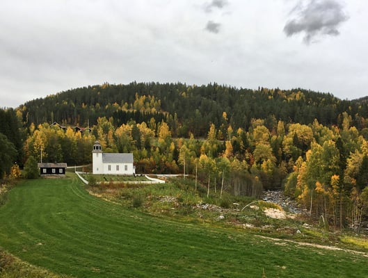 The church of Hovin is a long church built in block construction with room for 250 men. Above the entrance to the “våpenhuset” (weapons room – so the entrance area of a church is called because the visitors had to lay their weapons here) is written