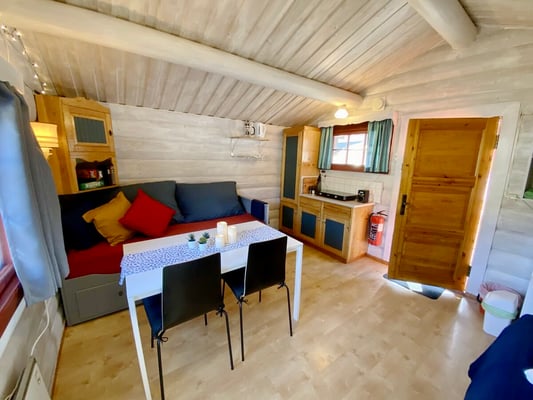 De minste hyttene er for 2 til 3 personer. De har minikjøkken og felles bad i sanitæranlegget. Prisene varierer fra 700-900 kr, Sengetøy med håndkle er inkludert i prisen. (egen sovepose er ikke tilatt)